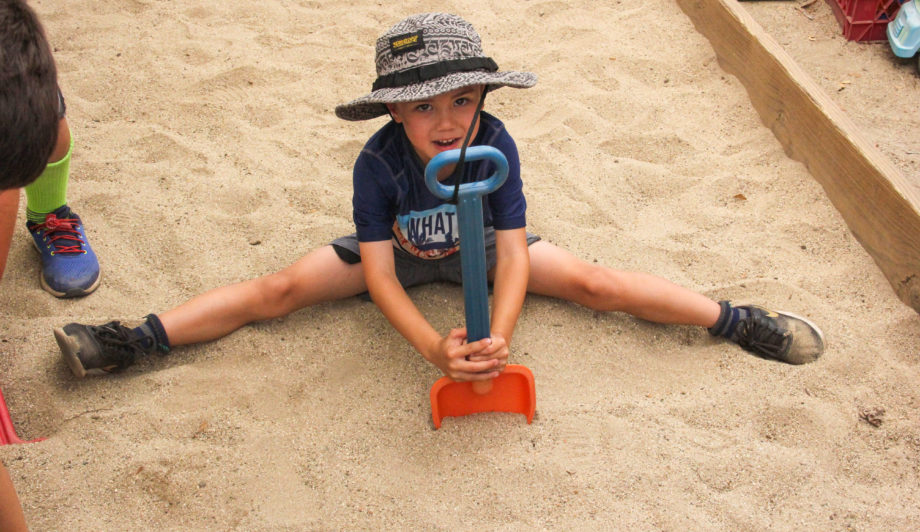 Unstructured, imaginative outdoor play area where each group explores nature, claims a “fort,” and uses natural elements such as rocks and sticks to build a world for themselves.