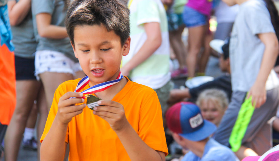 The week of Olympics is filled with relay races, swim meets, spirit contests, and lots of other fun, friendly competition. Our camp groups are divided into team colors to match the colors of the Olympic rings. Campers and staff often like to add to their team spirit by wearing their team colors and proudly displaying their team’s flag. Each activity at camp can earn points for the team as they work toward the bronze, silver and gold medals!